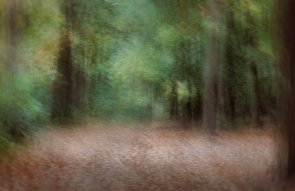Met Intentional Camera Movement (ICM) schilder je met licht en kleur. Door de camera tijdens een langere sluitertijd te bewegen – te zwaaien, draaien of zachtjes trillen – ontstaan vloeiende lijnen en dromerige vormen. Bladeren veranderen in penseelstreken, stammen worden ritmes, en het bos wordt een schilderij vol emotie.